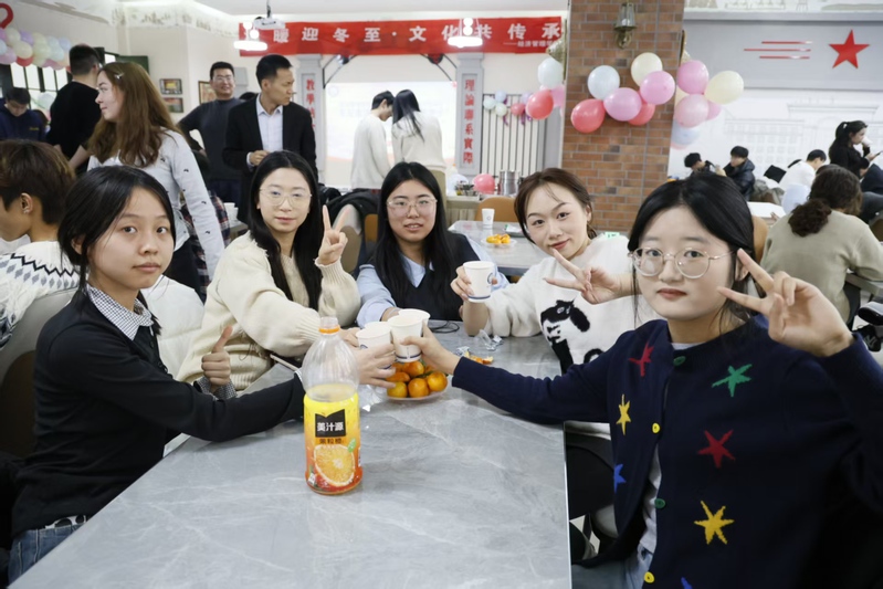活动期间,为了让同学们在寒冬过一个温馨暖心的冬至,学院精心不仅准备了祝福祈愿、猜灯谜抽奖等传统民俗体验活动,学生们还准备了自编自导自演的精彩文艺节目,师生们在实践中体验到传统文化的魅力,也进一步铸牢中华民族共同体意识。